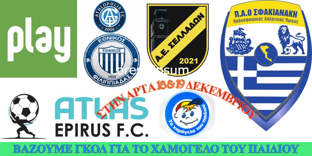 Η Σχολή Ποδοσφαίρου μας, δείχνοντας ακόμη μία φορά το κοινωνικό της πρόσωπο, θα συμμετάσχει στο τουρνουά που διοργανώνει "Το Χαμόγελο του Παιδιού" στην Άρτα στις 18/12/2021 με τα ηλικιακά τμήματα 2009(Κ14Β), 2011(Κ12Β), 2013(Κ10Β).
